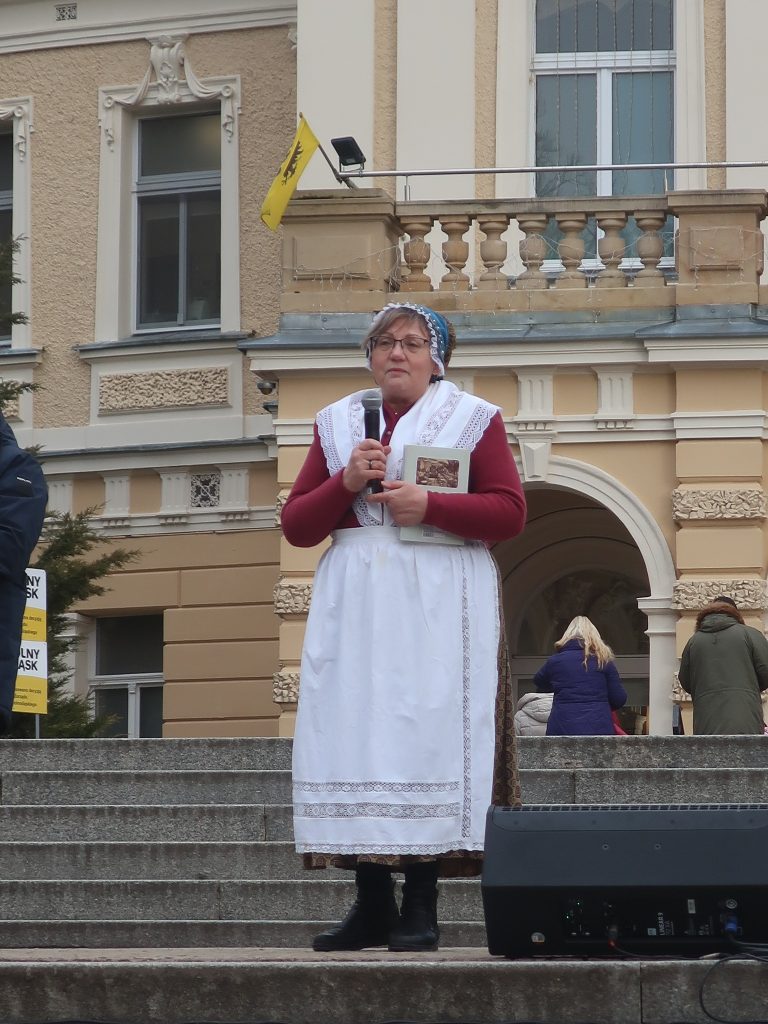Dziękujemy Karinie Fuglińskiej w tradycyjnym stroju sprzed wojny ze Skansenu Gottwaldówka w Kątach Bystrzyckich za fascynującą opowieść o przedwojennych, regionalnych, świątecznych tradycjach i potrawach, o kłodzkim pierniku o Streuselkuchen i o świętowaniu w niemieckim Lądku.